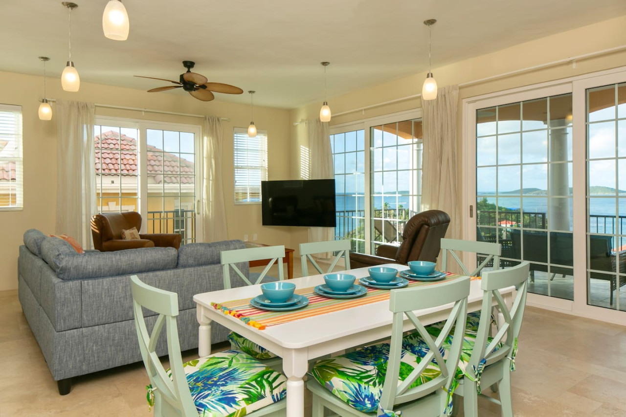 Pitaya 2 is a new beautiful 2 bedroom suite located at the mini resort Seagrape Vista in Cruz Bay, St John. This property is a 3 min walk to the Frank Bay beach and 8-10 minutes walk to downtown Cruz Bay. The living room has a dining table for 6. The kitchen has all you need for cooking. The master bedroom has a king size bed and the bathroom a walk-in shower. The second bedroom has either two twin or one king size bed as well as a bathroom with walk-in shower. Smart TVs in all rooms. An extra bed can accommodate a child up to 12 years of age if agreed with us upon booking.